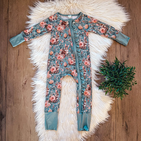Bunny Floral Bamboo Zip & Play Romper | Landrie Lou