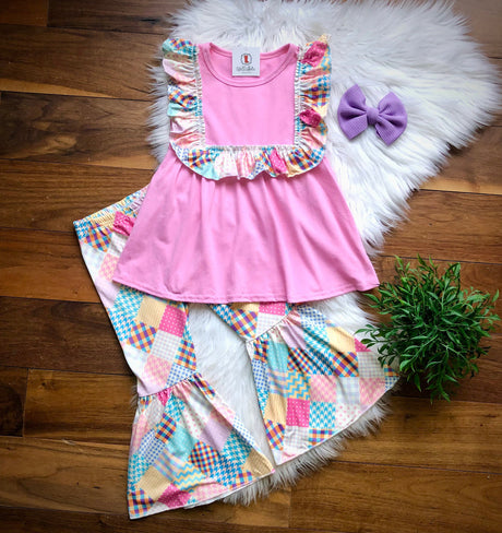 Patchwork & Pink Bell Pants Set by Wellie Kate