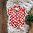 With bold checkerboard squares and playful little spiders, this button-up brings just the right mix of spooky fun and everyday cool. πΈβ¨